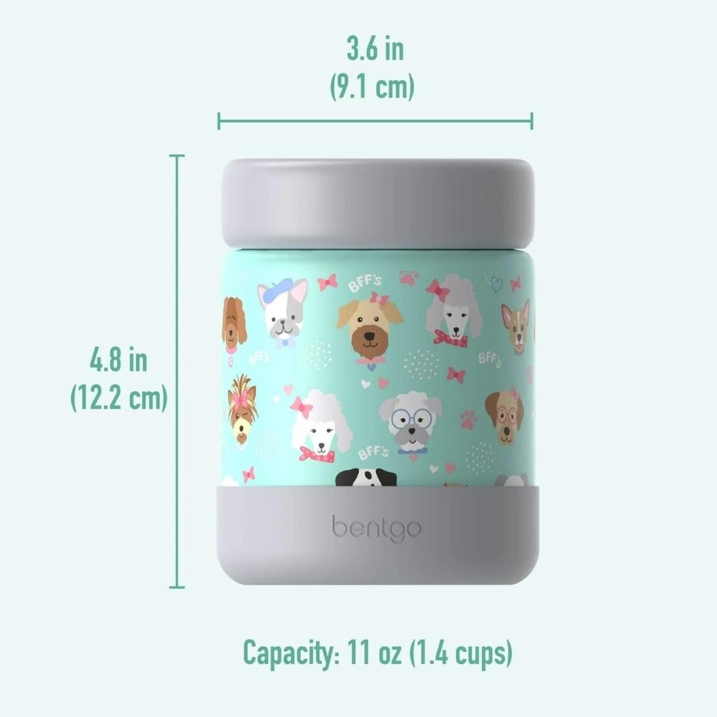 ¡Mantenga las comidas calientes o frías tan deliciosas como las empacó con el recipiente para alimentos de acero inoxidable Bentgo® Kids disponible en nuestros estampados Bentgo Kids más vendidos! Además de su aspecto divertido, el diseño a prueba de fugas permite que sus hijos lleven comidas a la escuela, al parque y más allá sin preocupaciones. Desde sopa de fideos con pollo hasta parfaits de yogur de frutas y macarrones con queso, finalmente puede empacar comidas con salsa sin ensuciar, y sentirse bien sabiendo que se disfrutarán a la temperatura perfecta. Hecho con aislamiento al vacío de doble pared que mantiene la comida caliente o fría durante horas, sus pequeños pueden comer sus comidas de este recipiente de boca ancha de 11 oz a la misma temperatura que las preparó para la hora del almuerzo. El recipiente para alimentos de acero inoxidable Bentgo Kids es completamente apto para niños: cuenta con una tapa de plástico fácil de abrir que se adapta a las manos pequeñas y un parachoques de silicona antideslizante extraíble que brinda protección adicional contra caídas accidentales. Hecho con materiales libres de BPA y apto para lavavajillas en la rejilla superior para una limpieza fácil, ¡este es el recipiente para alimentos perfecto para comidas calientes o frías para llevar!