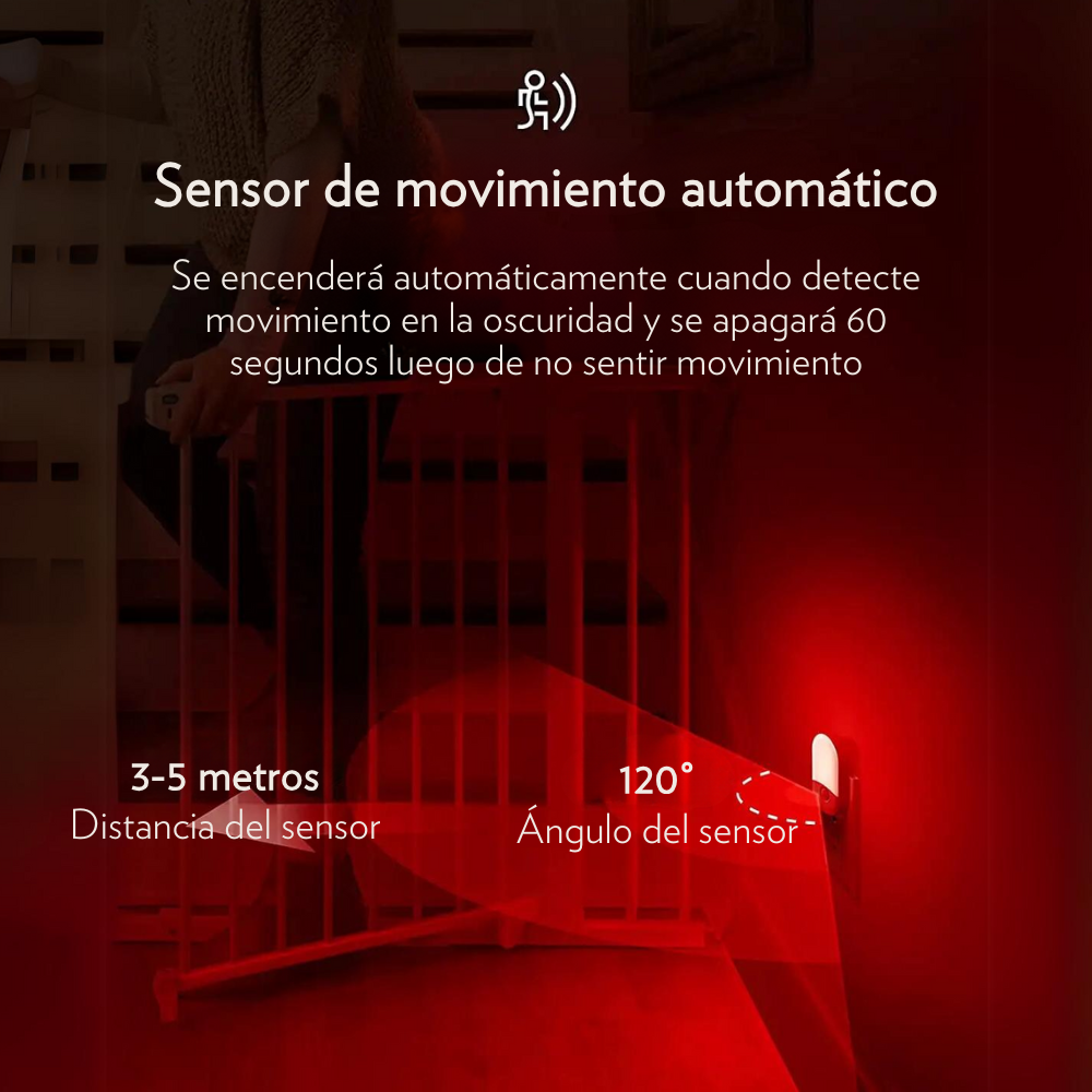 Crea un ambiente de descanso ideal con esta luz roja que se activa al detectar movimiento en la oscuridad. Su luz roja no interrumpe el sueño ni afecta la melatonina, siendo perfecta para atender a tu bebé o iluminar tus pasos por la noche.