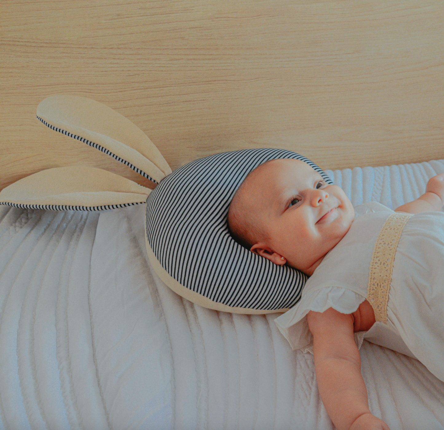 Proporciona comodidad en el cuello y cabeza, alineando la columna, previene la Plagiocefalia su forma circular ayuda a distribuir de manera uniforme la presión de la cabeza, es fresco y suave al contacto, no se deforma con el uso ni lavadas.