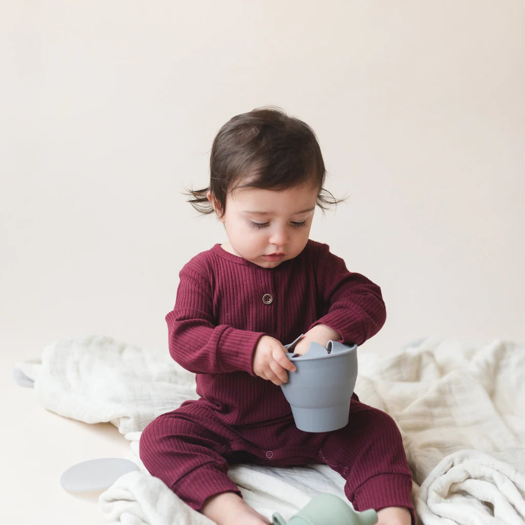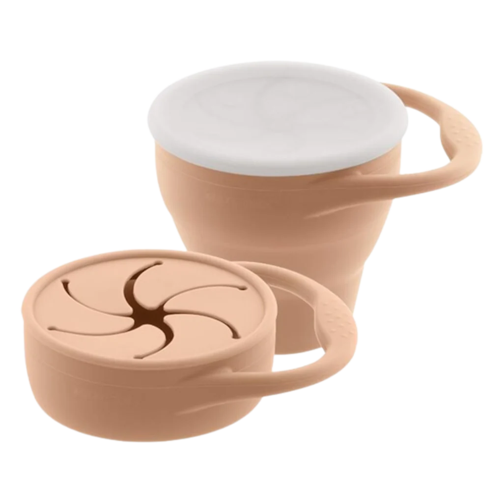 Vasito snack anti-caída de 100% silicona de grado alimenticio, libre de BPA diseñado para bebés, fomenta la independencia, con tapa para evitar derrames y es fácil de transportar para comidas fuera de casa.